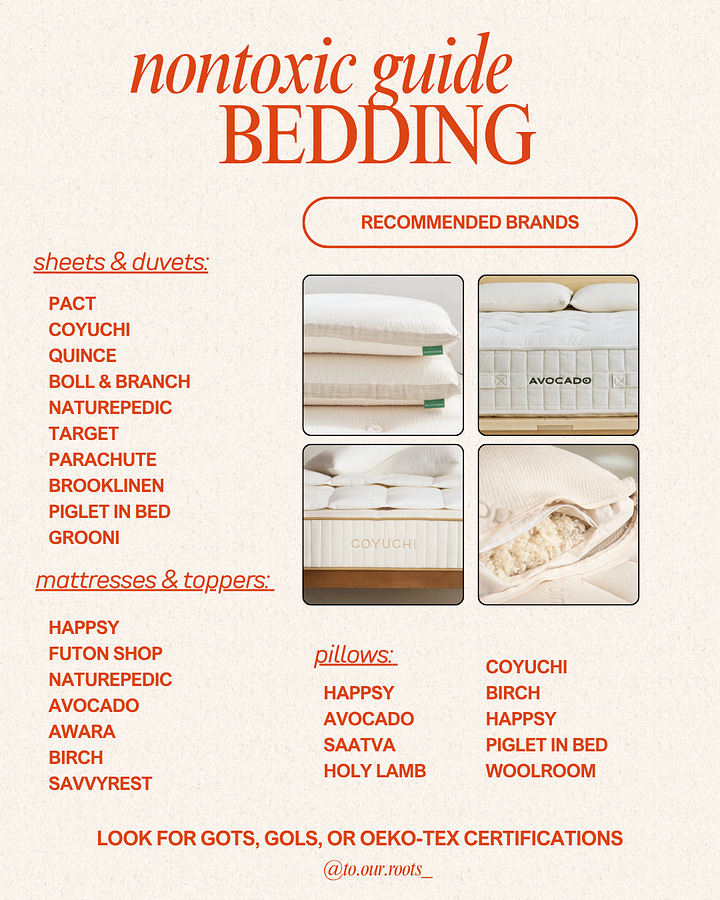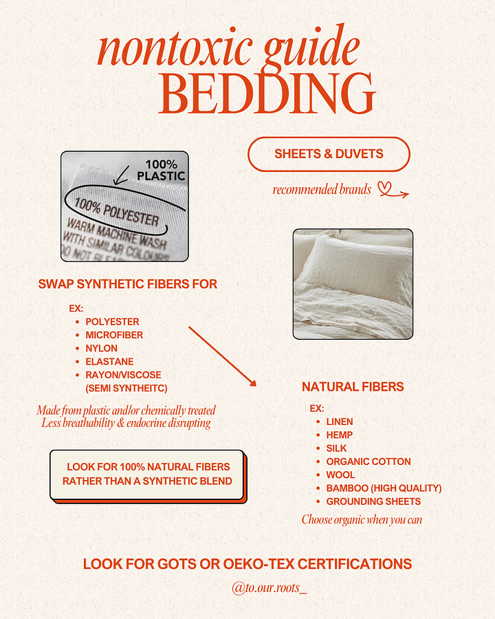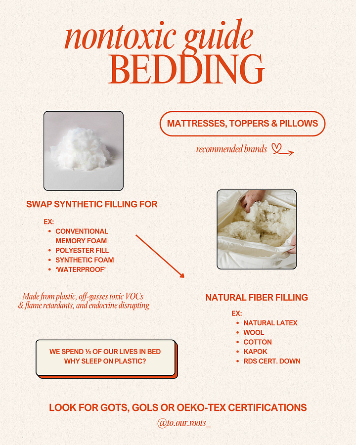 The most impactful swaps we make are the ones for things we use or are exposed to most often. Considering we spend about ⅓ of our lives in bed, this is really important!